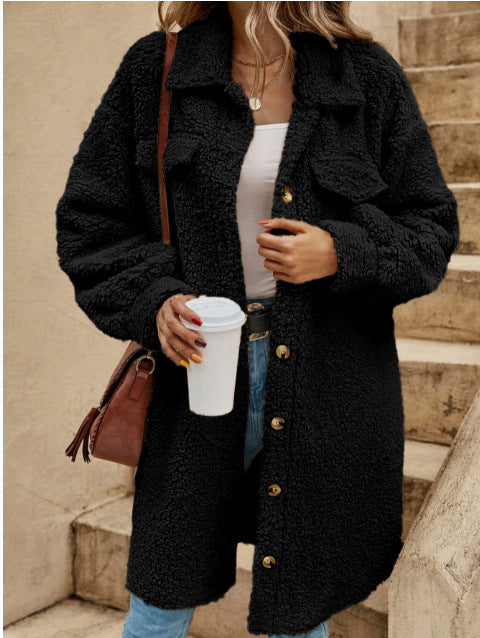 Lang damefrakke – Oversized pasform – Blød imiteret uld – Klassisk knaplukning