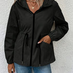 Vandtæt damejakke – Justerbar pasform – Hætte – Hoftelængde – Lommer