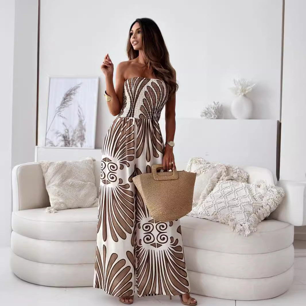 Stropløs jumpsuit til kvinder – Afslappet pasform – Fedt print – Letvægtsstof