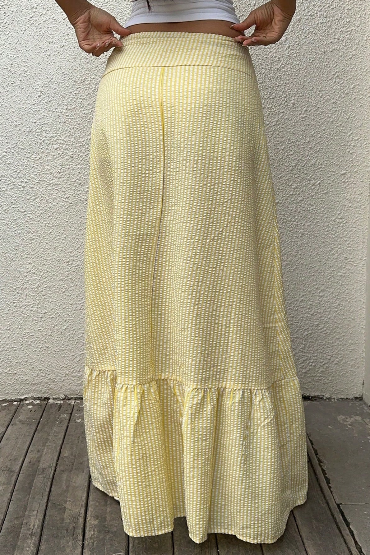Højtaljet, stribet, svaj-nederdel med smal pasform