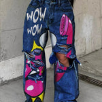 Mellemhøj talje baggy jeans med tryk
