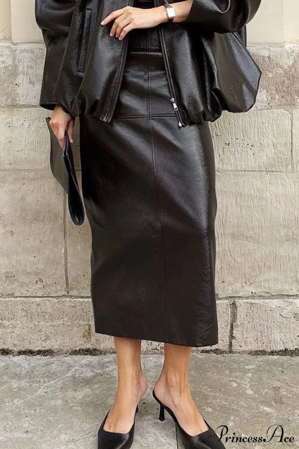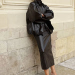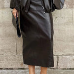 Elegant midi-nederdel med slids i PU-kunstlæder