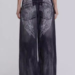 Y2K Wide Leg-jeans med vasket læder og englevinger