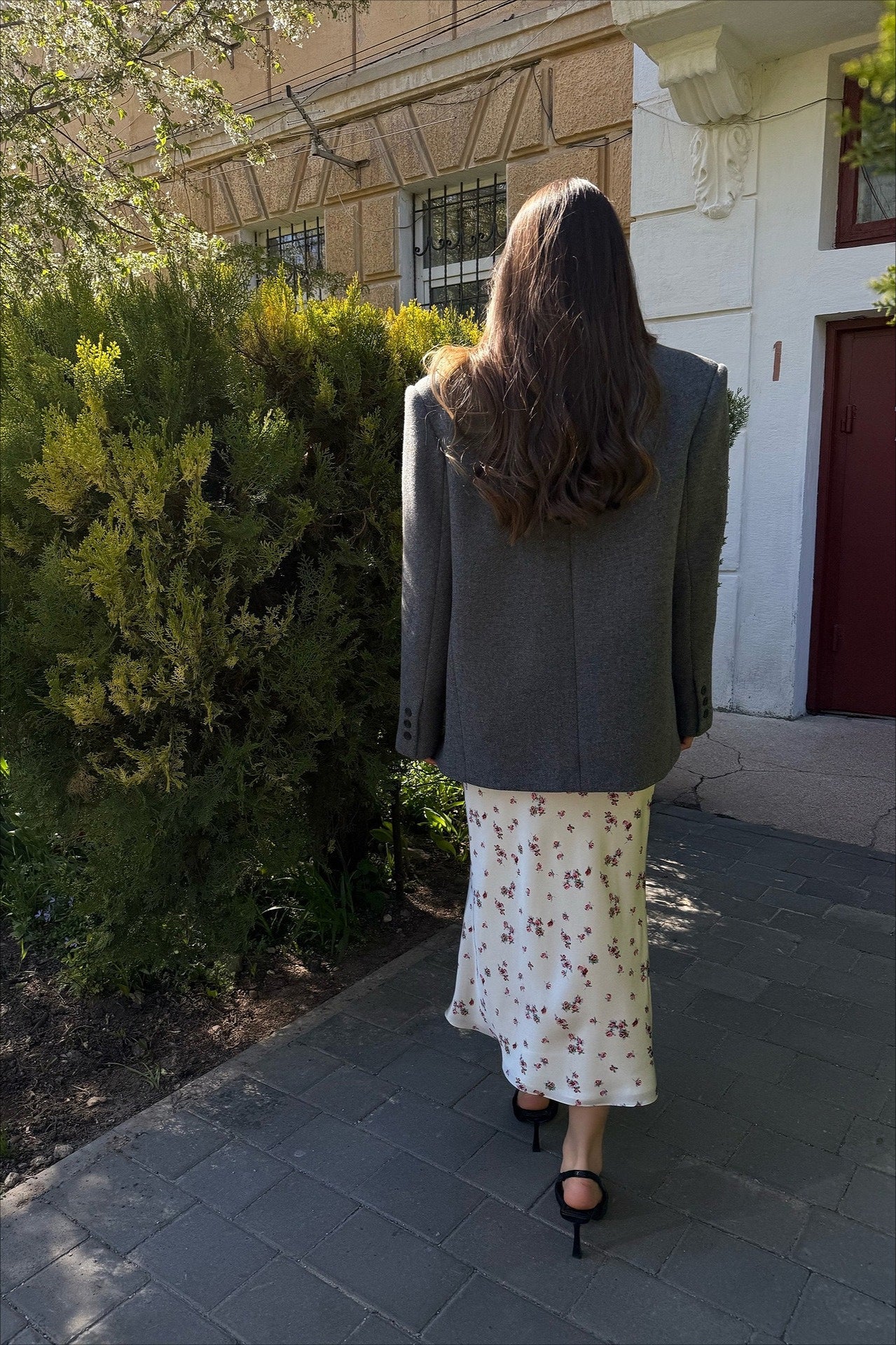 Højtaljet blyantnederdel med blomsterprint