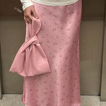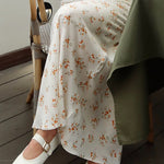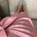 Højtaljet draperet nederdel i blomsterprintet satin