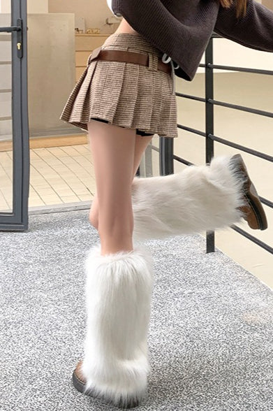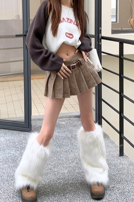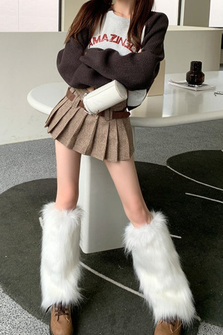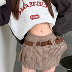 Højtaljet plisseret nederdel med houndstooth-mønster