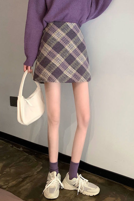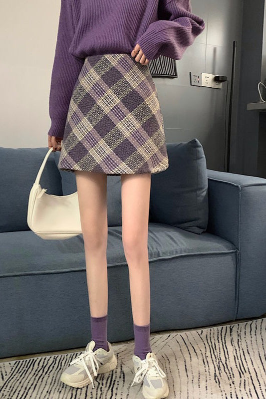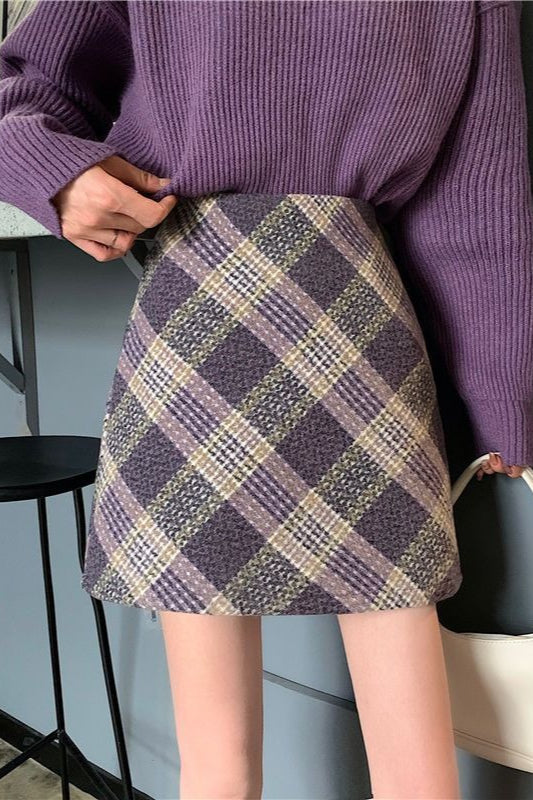 Højtaljet uldternet A-formet nederdel