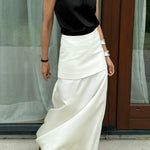 Højtaljet vintage satin maxinederdel