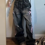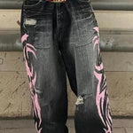 Jeans med brede ben og gotisk print