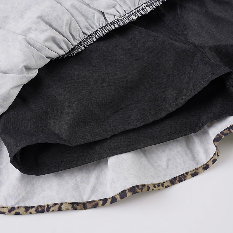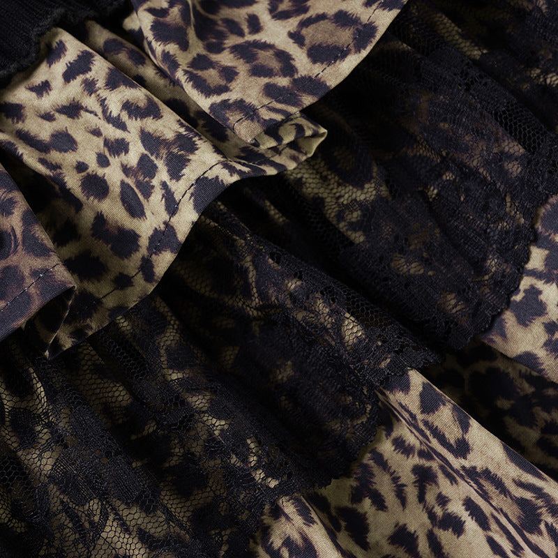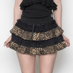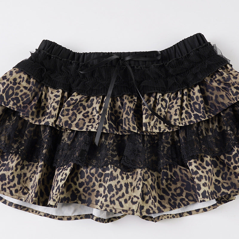 Kort nederdel med leopardprint og flæset blondesløjfe