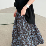 Højtaljet plisseret nederdel med retro blomsterprint