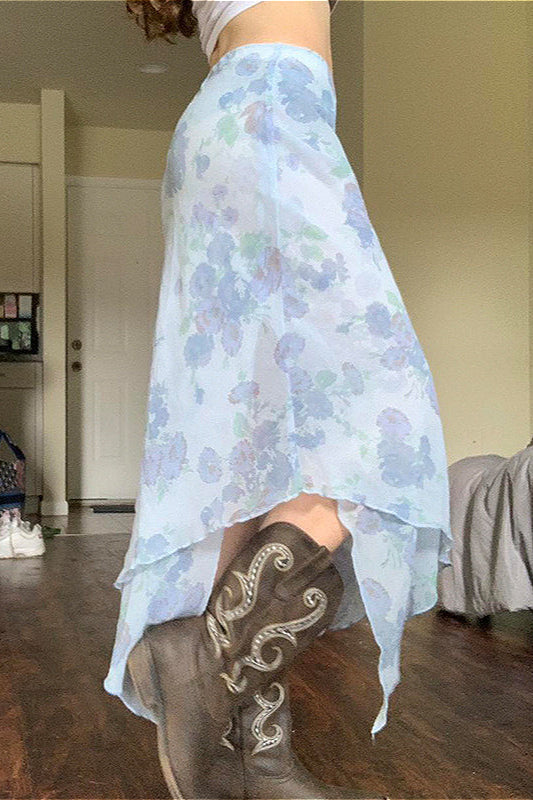 Slankende asymmetrisk blomstret striknederdel