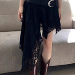 Unik asymmetrisk kort nederdel i lyserød hæklet blonde