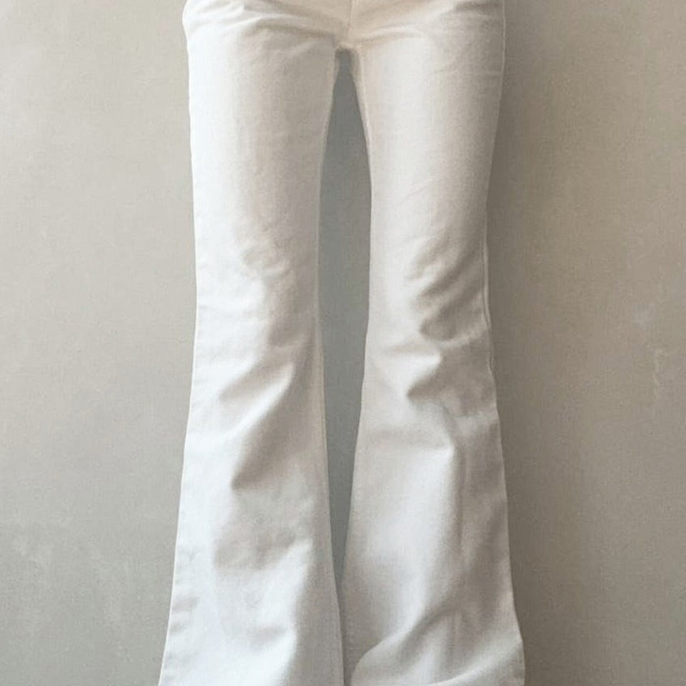 Hvide jeans med lav talje og bootcut-stræk