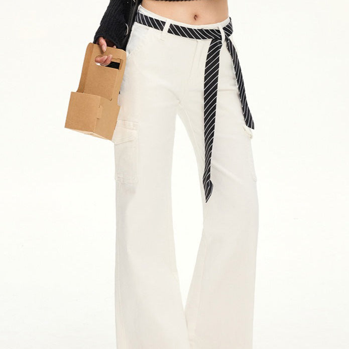 Hvide cargojeans med vide ben og lange lynlåslommer