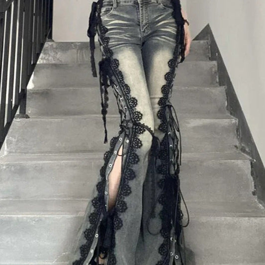 Harajuku Jeans Med Brede Ben Og Patchwork