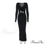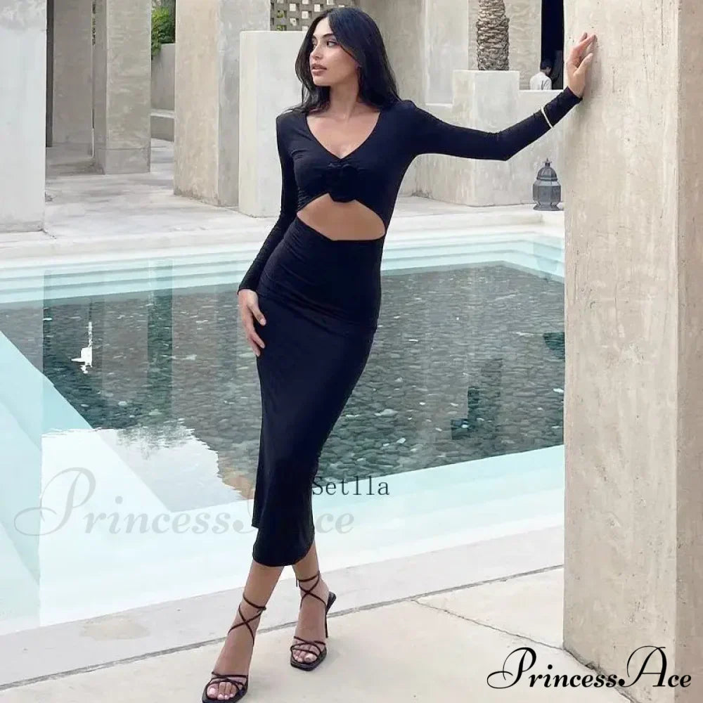 Lang damekjole med blomsterudskæringer, lange ærmer, sexet midi-snit