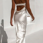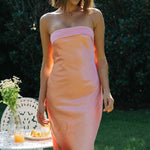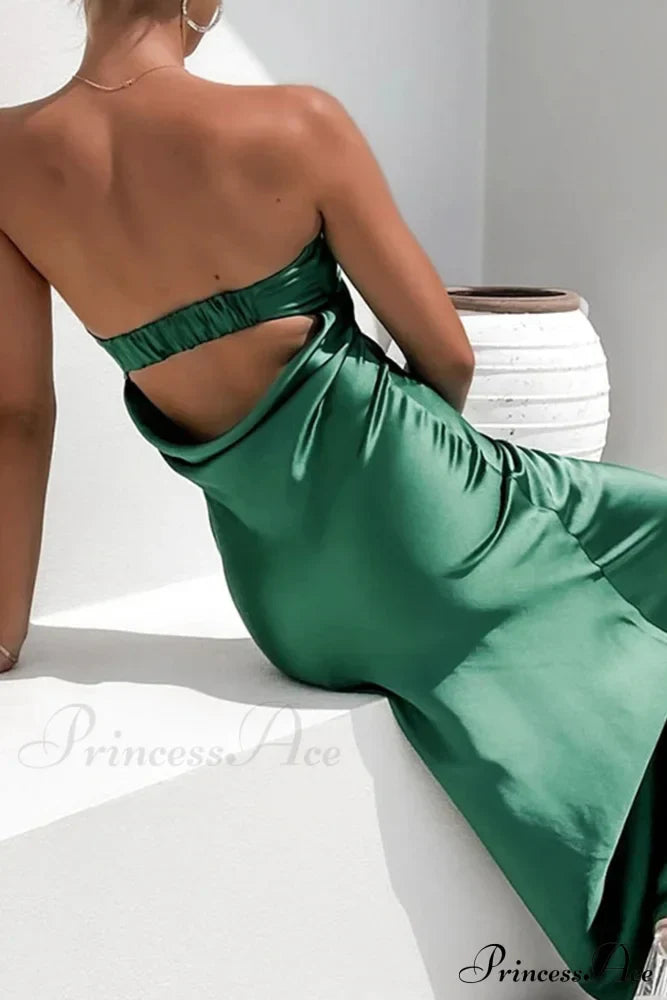 Stropløs kjole i ensfarvet satin