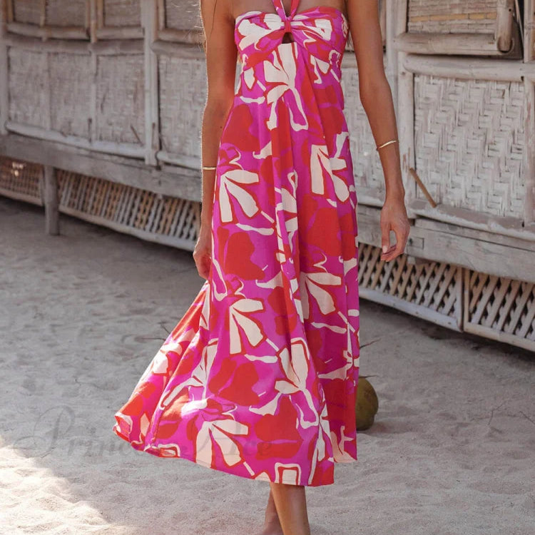 Berry Charming Lotus Printed Backless Midi-kjole