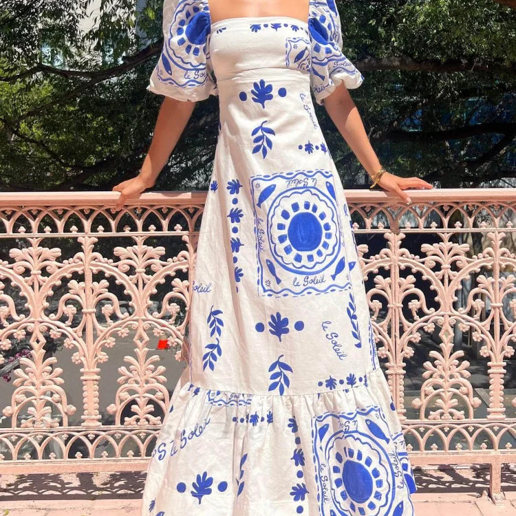 Elegant midikjole med pufærmer til ferien