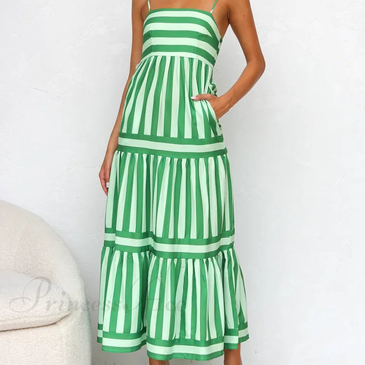 Stribet sommerkjole med stropper, charmerende stil til ferien