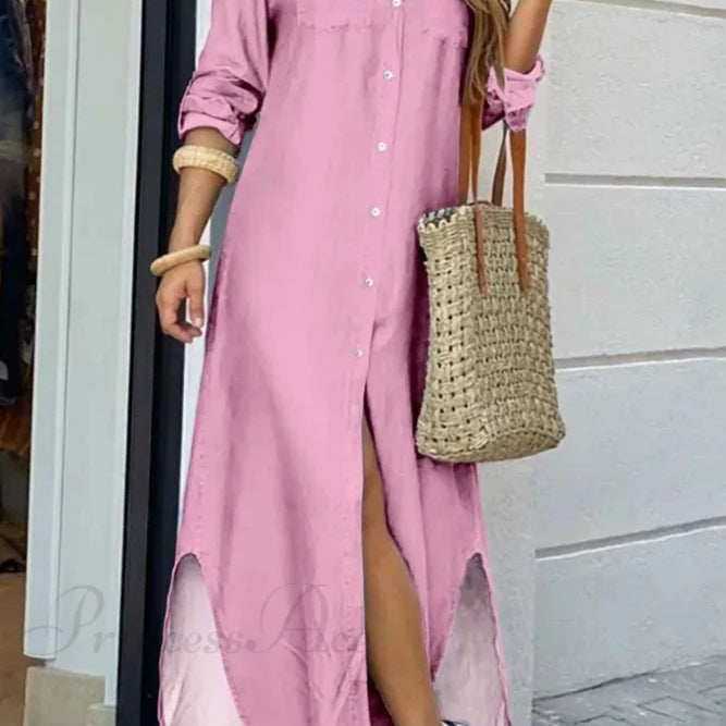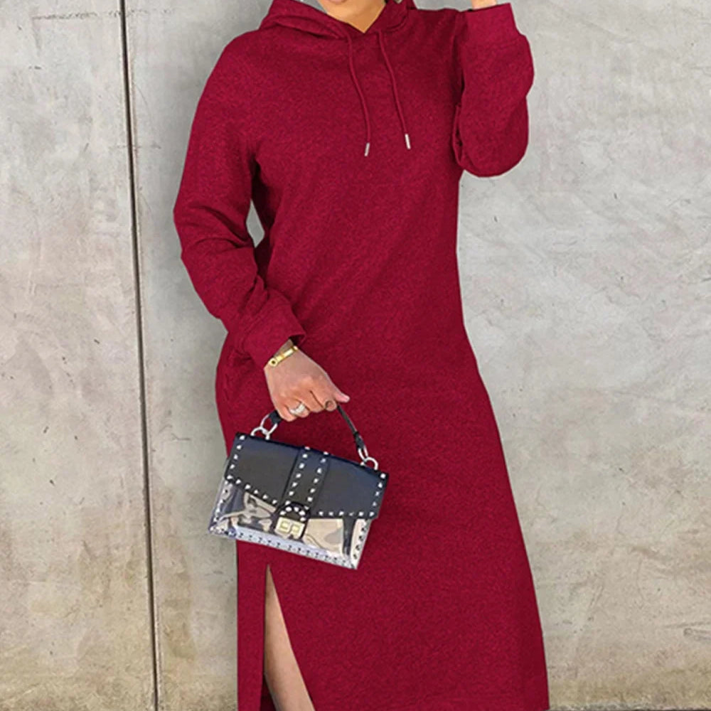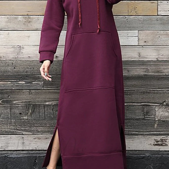Ribbet strikkjole med slids i siden og kontrastdetaljer