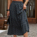 Midinederdel til kvinder – Flagrende snit – Elastik i taljen – Blomsterprint – Flæser