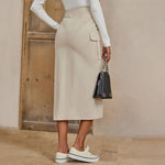 Midi-nederdel til kvinder – Høj talje – Tætsiddende snit – Struktureret stof – Cargolommer
