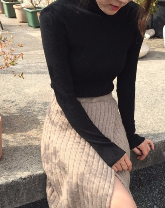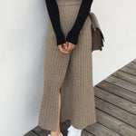Lang damenederdel - Ribbet strik - Høj talje - Komfortabel og elegant