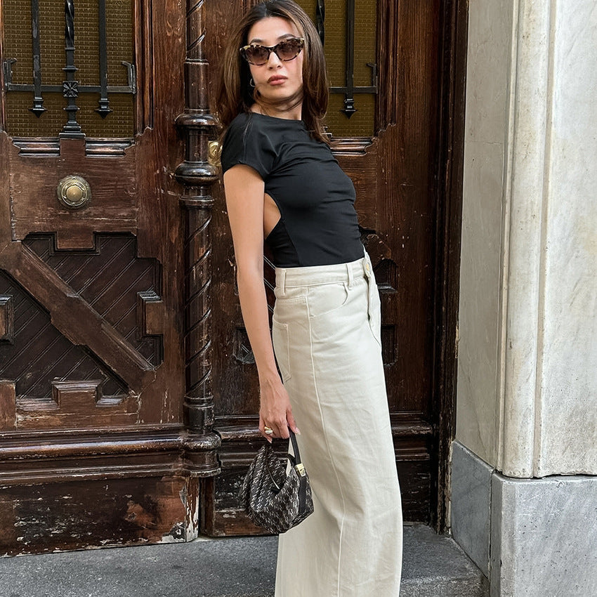 Midi-nederdel til kvinder – 100% bomuld – Slim fit – Høj talje – Elegant slids foran