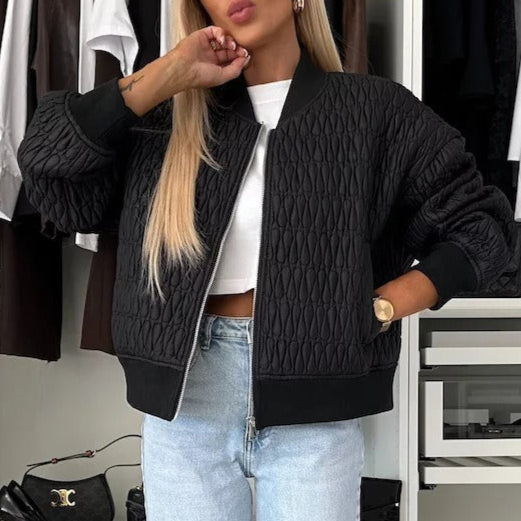 Dame quiltet jakke – Kort snit – Oversized look – Bomberkrave med lynlås