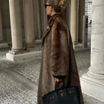 Elegant lang uldfrakke med bælte og lange ærmer
