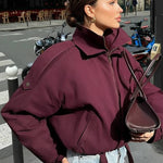 Løstsiddende, ensfarvet jakke med kort, opretstående krave