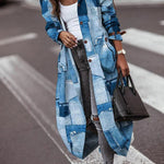 Lang damefrakke – Oversized pasform – Patchwork-design – Klassisk knaplukning