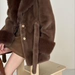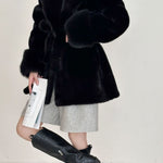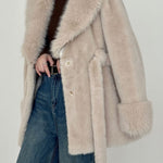 Mellemlang frakke i imiteret ruskind med hakkrave og bindebælte