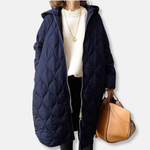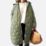 Dame quiltet jakke – Oversized pasform – Lang – Hætte – Lynlåslukning