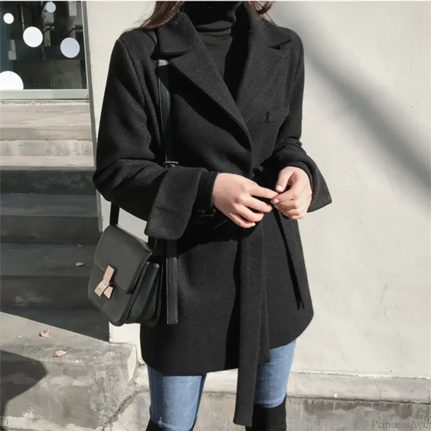 Sort blazer i uldblanding med snørebånd