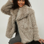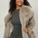 Vinterfrakke med hakkede reverser i kunstpels