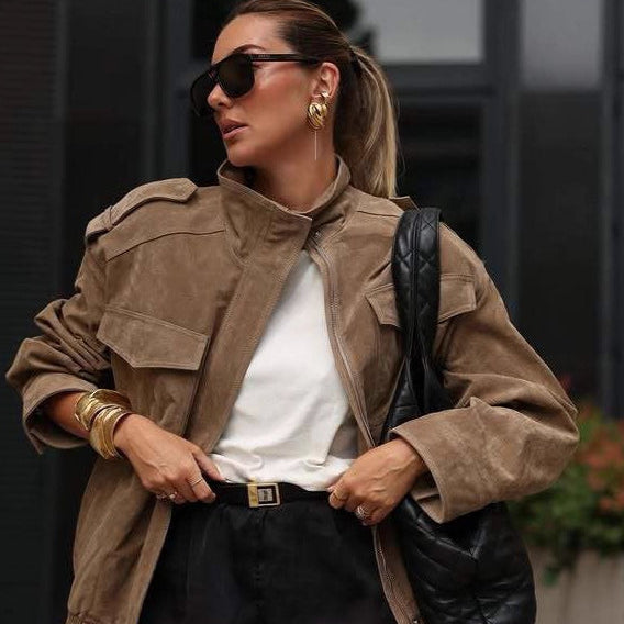 Retro kort ruskindsjakke
