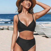 Dame badedragt – Højtaljet bikini – V-udskæring – Blødt, strækbart stof