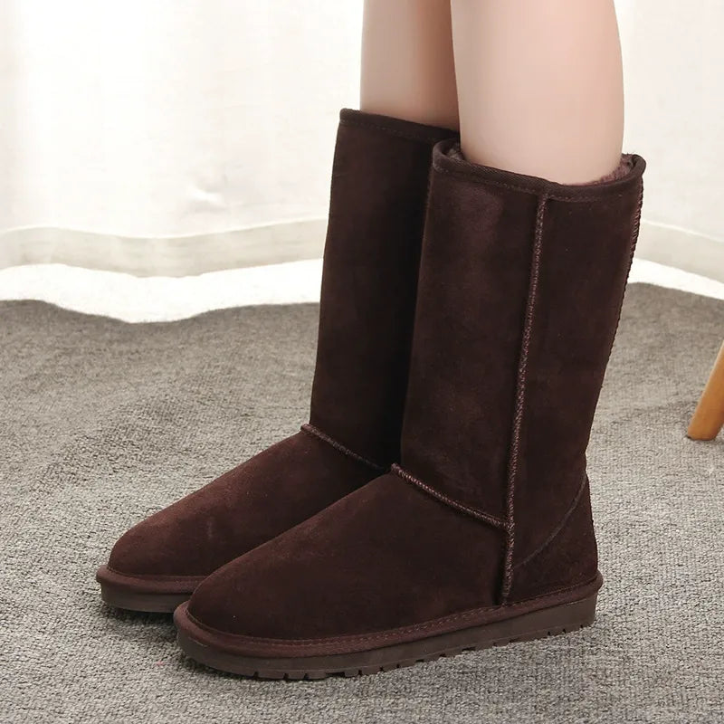 Knæhøje damestøvler – Ruskind – For i imiteret pels – Flad sål