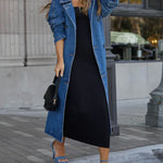 Dametrenchcoat - Denim - Oversized pasform - Midt på læggen - Hakreverskrave
