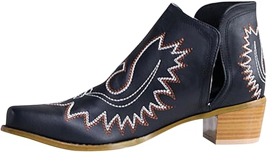 Dameankelstøvler - Western Style - Komfortabel blokhæl - Spids tå - Dekorative detaljer