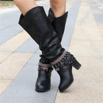Damehøje støvler - Elegant læder - Komfortabel blokhæl - Moderigtige nittede detaljer