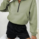 Damesweatshirt – Afslappet pasform – Blød fleece – Lynlåskrave – Kængurulomme