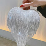 Luksuriøs hjerteformet aftenclutch prydet med rhinsten og diamanter, ideel til et bryllup.