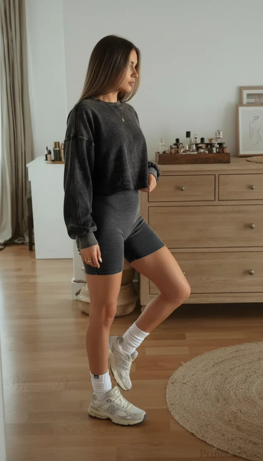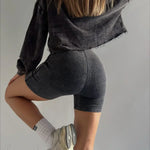 Todelt retro ribbet crop top sæt