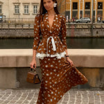 Todelt havfruekjole i bomuld og hør med dyb halsudskæring