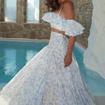Todelt sæt: maxikjole med flæser og off-shoulder blomsterprint