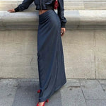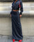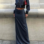 Todelt blåt sæt med lynlås, lav talje, ideelt til kontoret